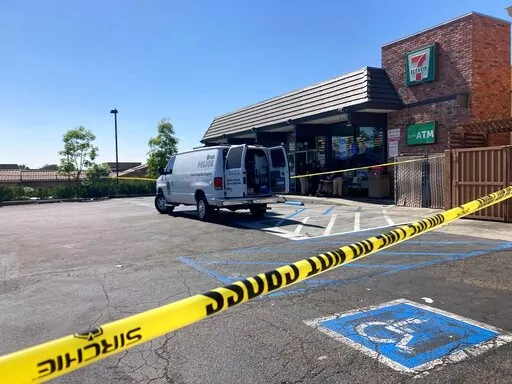 The first robbery happened around midnight in Ontario, about 35 miles (56 kilometers) east of Los Angeles. Then, about 45 minutes later, a gunman stole a few items and $400 to $500 in cash from a store in the neighboring city of Upland. About an hour later, the Riverside store was robbed and a customer shot and gravely wounded.
