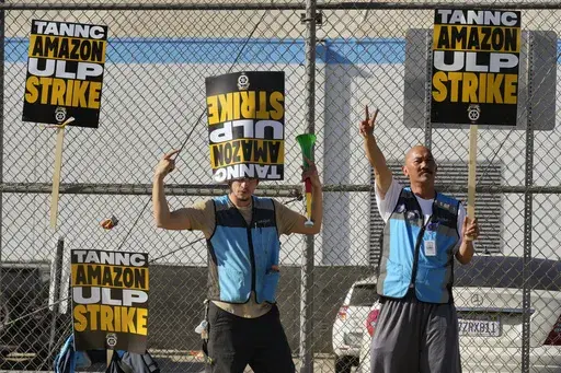 The Teamsters say workers at Amazon are striking at seven delivery stations in Southern California, San Francisco, New York City, Atlanta and Skokie, Illinois, because the company ignored a Sunday deadline the union had set for contract negotiations. At midnight on Saturday, the Teamsters say workers will also strike at a prominent warehouse in New York, which voted to join the fledgling Amazon Labor Union in 2022 and have since elected to affiliate with the Teamsters.