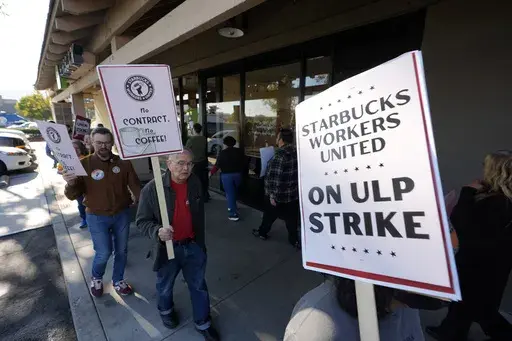 Amazon delivery drivers and Starbucks baristas are on strike in a handful of U.S. cities as they seek to exert pressure on the two major companies to recognize them as unionized employees or to meet demands for an inaugural labor contract.