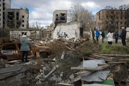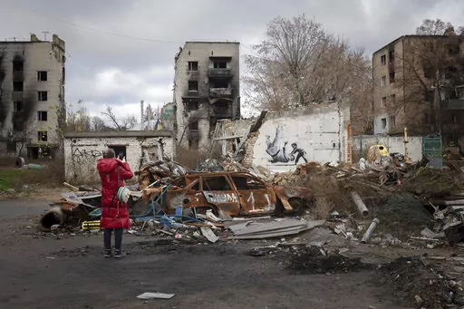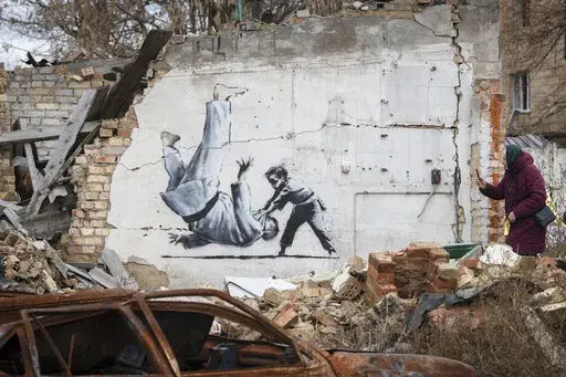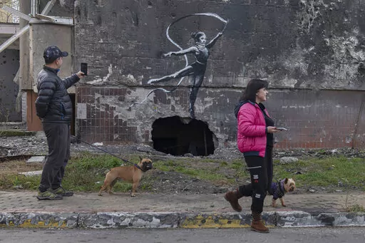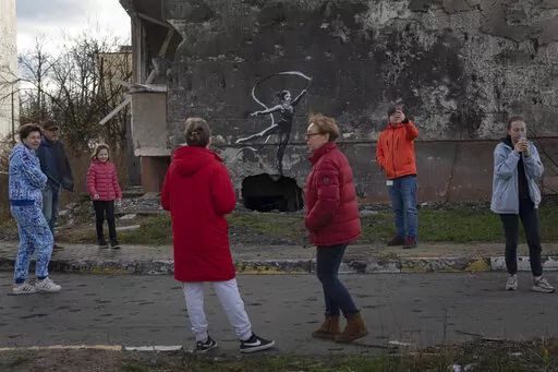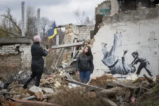 BORODYANKA, Ukraine (AP) — Amid the ruins of war, the flowerings of art.