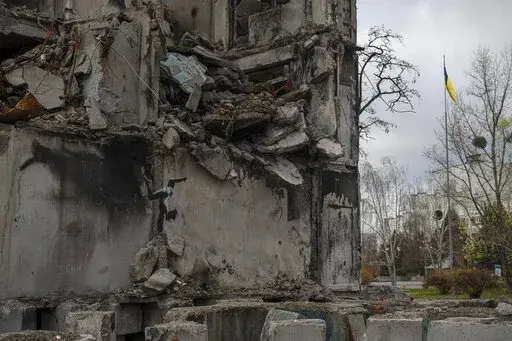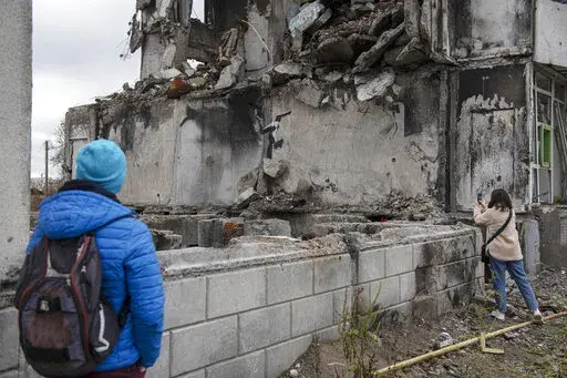 The town was the target of shelling and fighting in the early stages of the Russian invasion, which turned apartment buildings into charred, bombed-out hulks.
