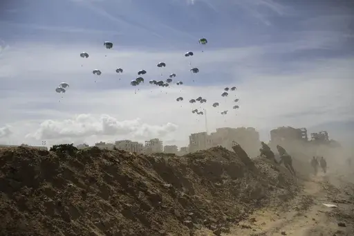 On the eve of Ramadan, hungry Gaza residents scrambled for packages of food supplies dropped by U.S. and Jordanian military planes — a method of delivery that humanitarian groups call deeply inadequate compared to ground deliveries. But the daily number of aid trucks entering Gaza since the war has been far below the 500 that entered before Oct. 7 because of Israeli restrictions and security issues.
