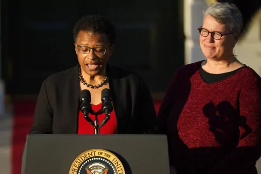 Singers Sam Smith and Cyndi Lauper performed. Vice President Kamala Harris recalled officiating at a lesbian wedding in San Francisco. And the White House played a recording of Biden's television interview from a decade ago, when he caused a political furor by unexpectedly disclosing his support for gay marriage. Biden was vice president at the time, and President Barack Obama had not yet endorsed the idea.