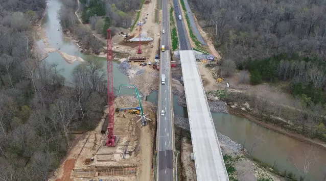 The project includes construction of new northbound and southbound bridges over Hickahala Creek and the Hickahala relief area. The northbound bridges are being built on a new alignment.