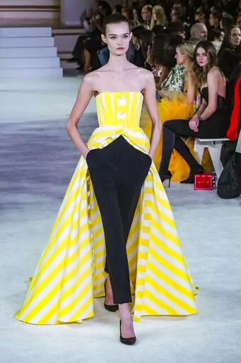 NEW YORK (AP) — Carolina Herrera is a brand synonymous with elegance and class and in this year's fall/winter debut, the brand pushed the boundaries on high drama, romance and grandeur — while also showing restraint when necessary.