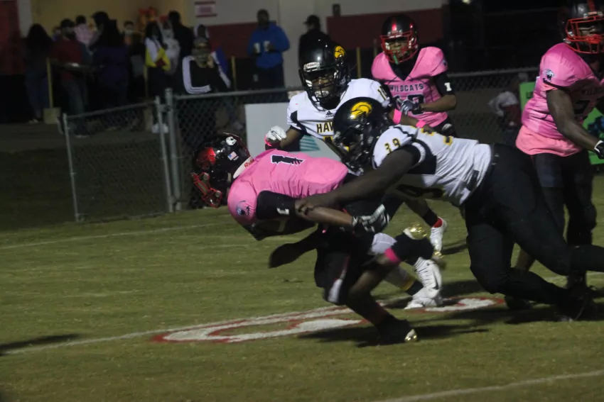 Holly Springs fumbled its first possession at midfield, setting up a short field for the Wildcats. Four plays later, senior quarterback Kylan Garrett made the Hawks pay, pushing the lead to 13-0 with a 35-yard touchdown run.