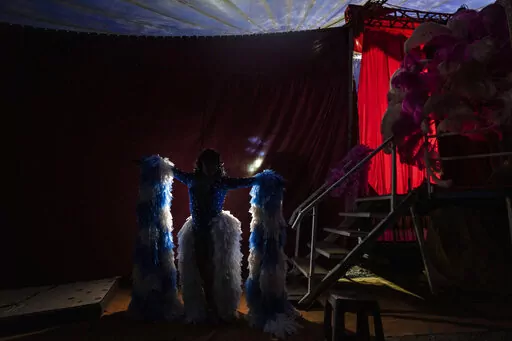 SANTIAGO, Chile (AP) — The transformation begins as night falls on this semi-desert esplanade on the outskirts of Chile’s capital, with Arturo, Alejandro and René applying makeup and donning wigs, feathers and sequins to become “Verónica Power,” "Alexandra” and “The Crazy Purse Woman.”