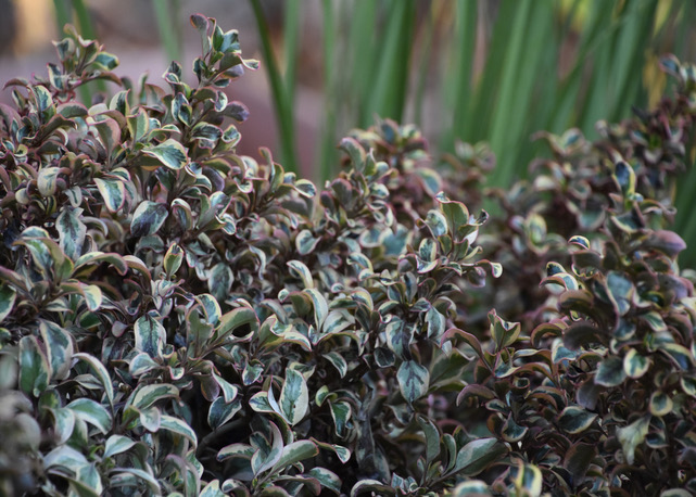 This plant is a colorful, evergreen shrub that reminds me of a succulent. The plants grow densely, with a well-branched growth habit. I really like the high gloss of the foliage that helps reinforce the mirror bush common name.