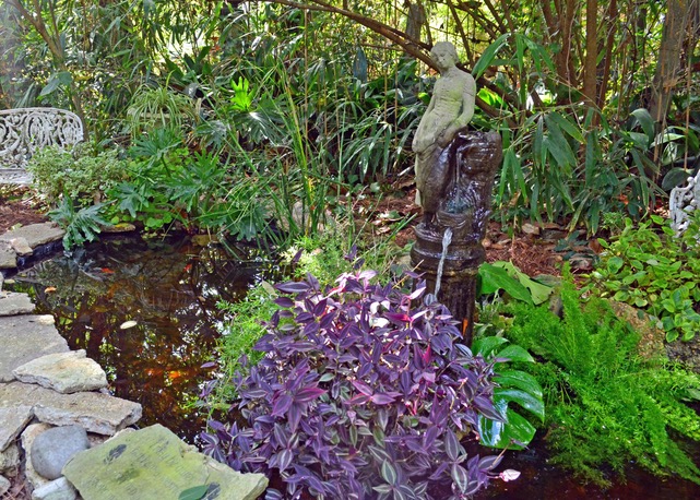 A split-leaf philodendron created a tropical ambiance in the garden pond.