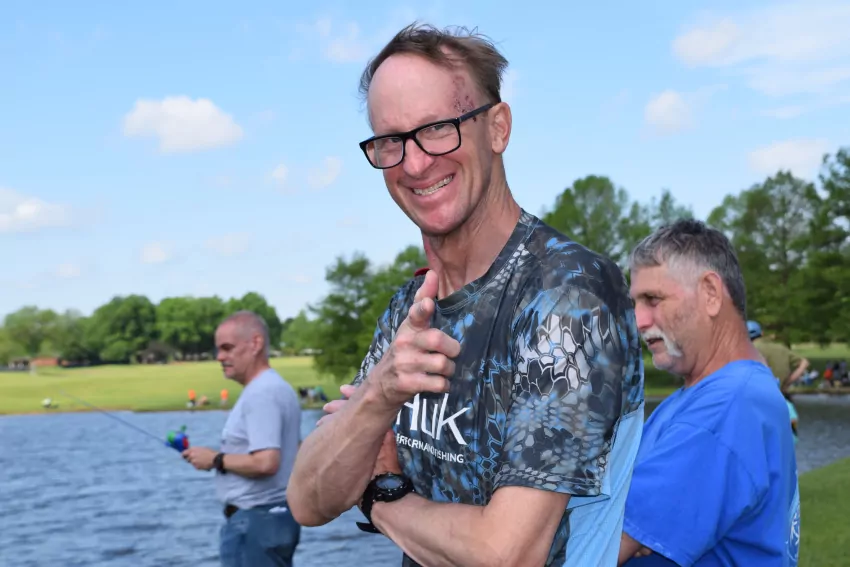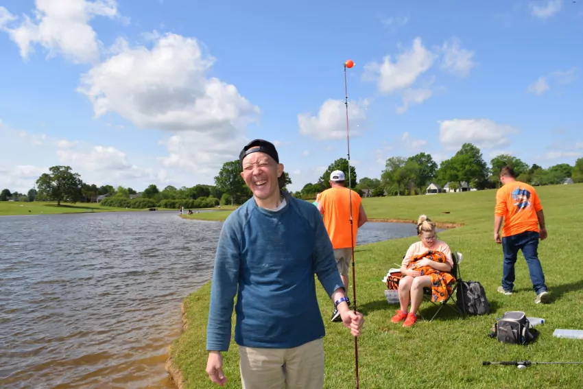 A native of the greater Memphis area, Brian Ziskind has lived at The Baddour Center for over eleven years, and the fishing rodeo has always been one of his favorite events. He encourages campus visitors to attend it, and he helps staff plan the event. His family comes to fish with him each year, and they showed up again this year.