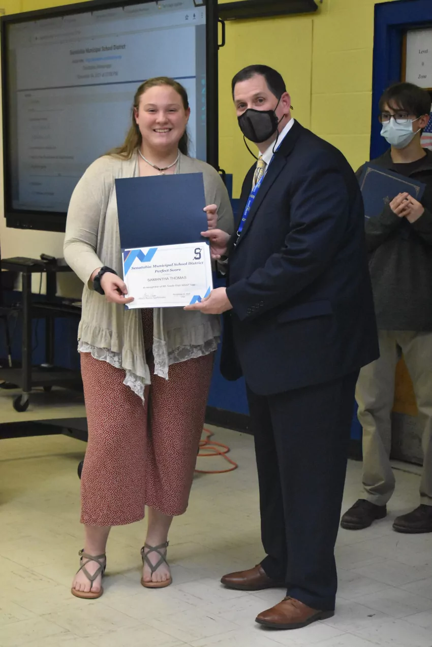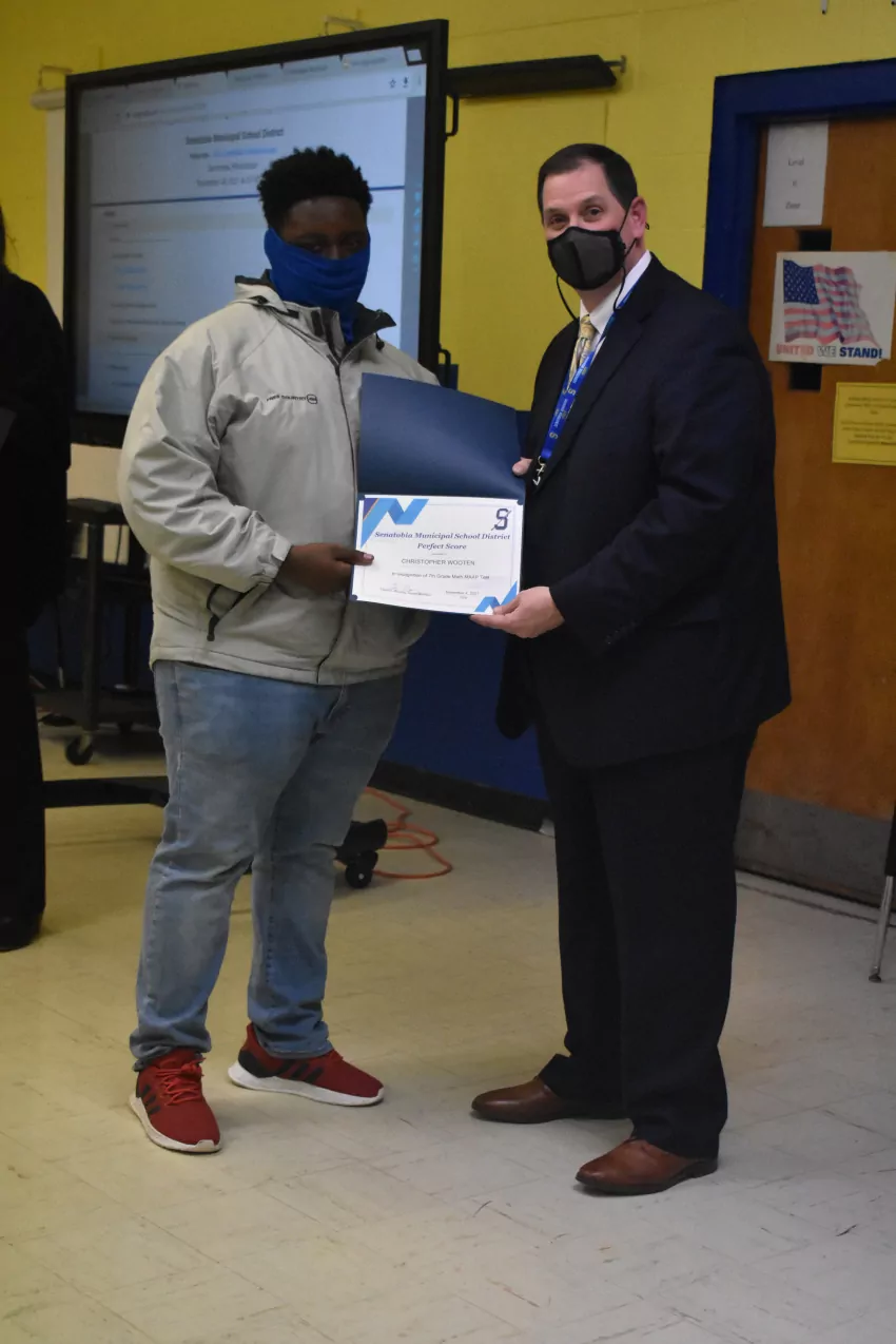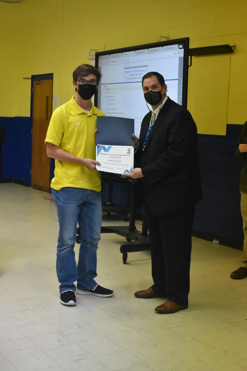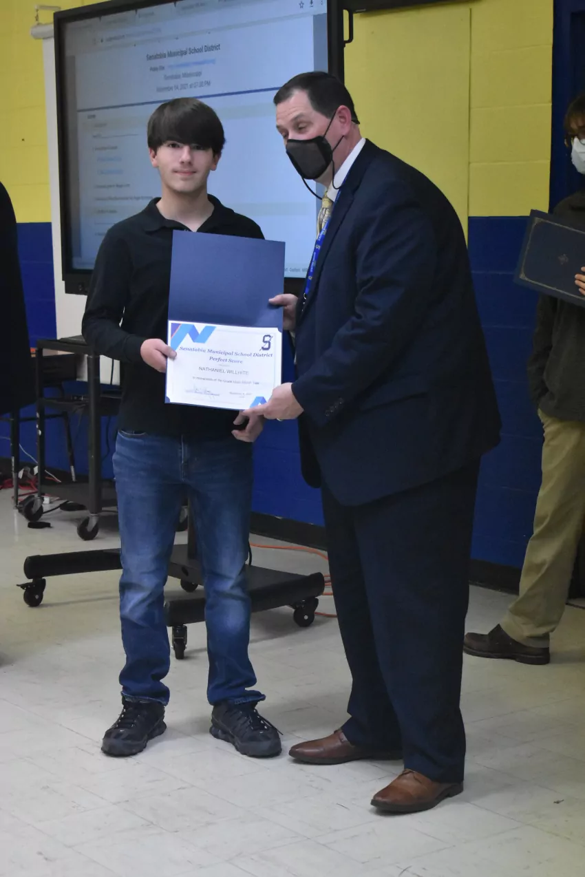 Five students from Senatobia High School were honored at the meeting: Blake Hendrix, Samantha Thomas, Riley Turner, Drake Estep and Logan Sinquefield. Hendrix is the sole student in the district who earned a perfect score in both English Language Arts and Mathematics.