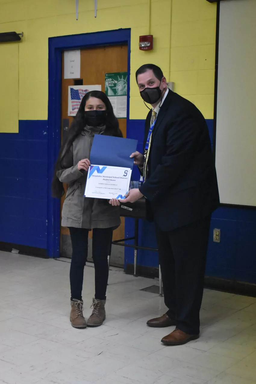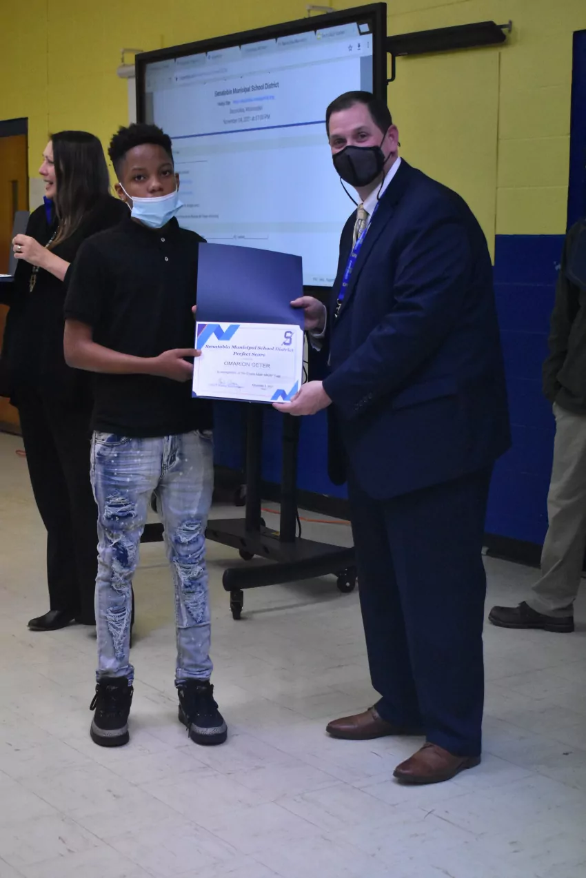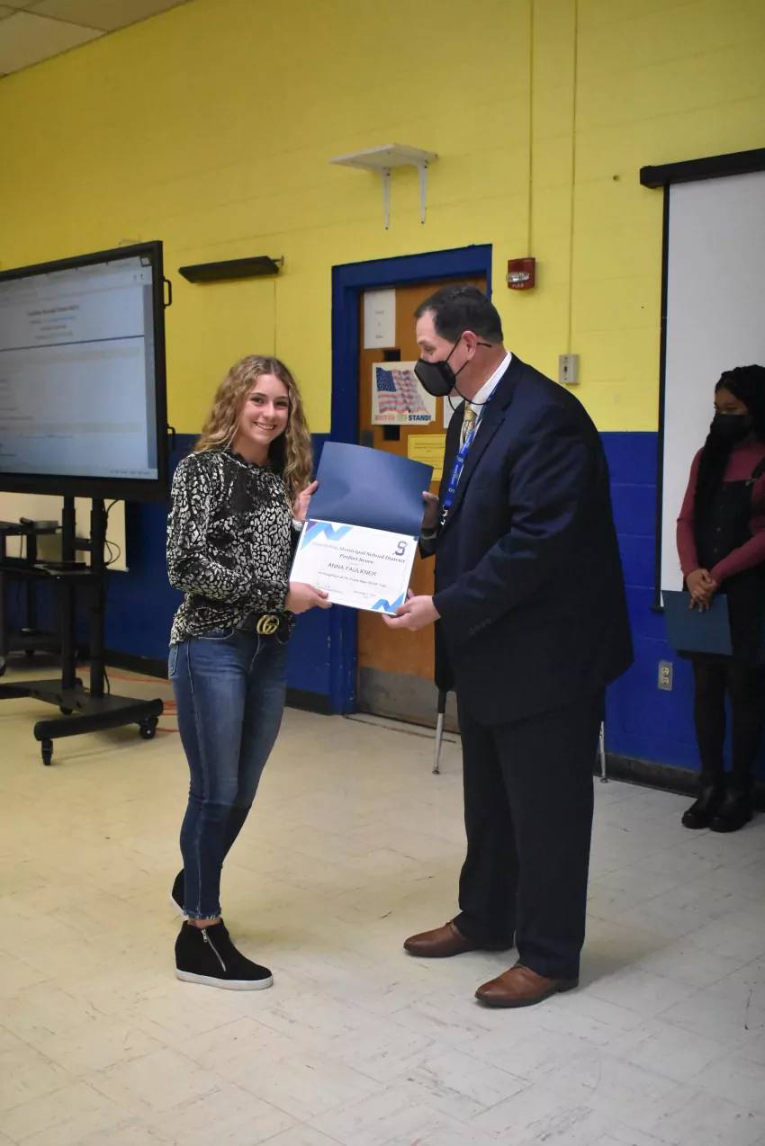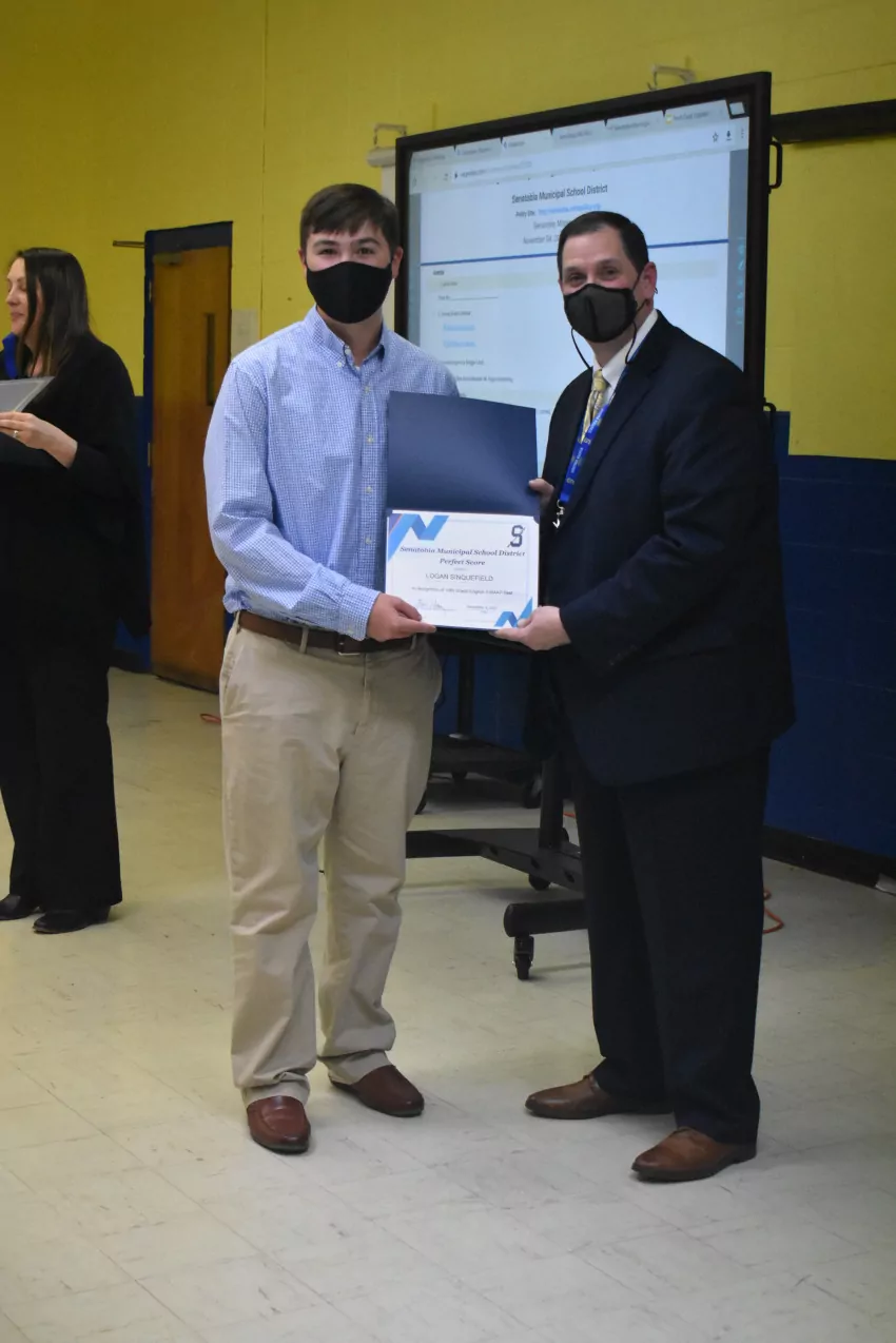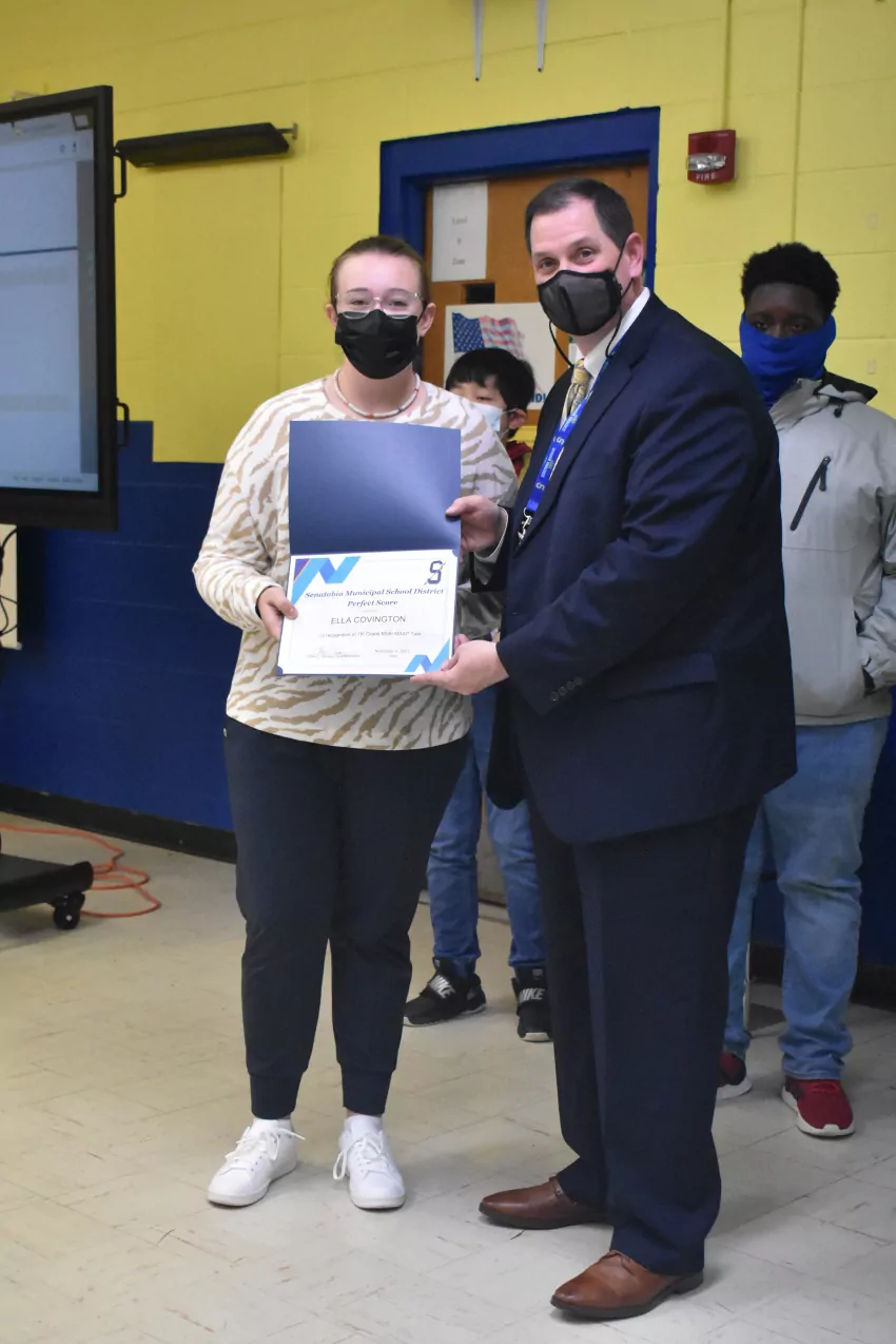 Five students from Senatobia High School were honored at the meeting: Blake Hendrix, Samantha Thomas, Riley Turner, Drake Estep and Logan Sinquefield. Hendrix is the sole student in the district who earned a perfect score in both English Language Arts and Mathematics.