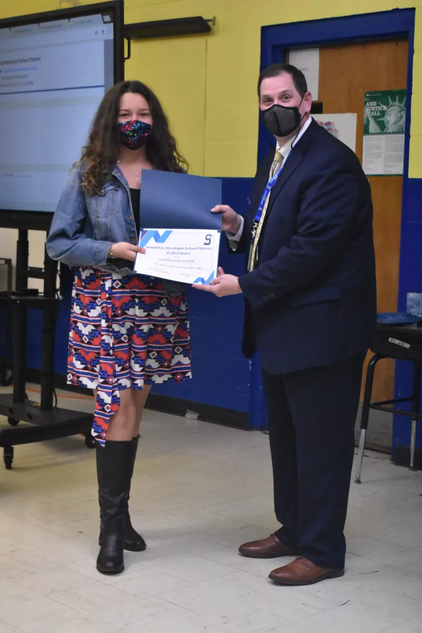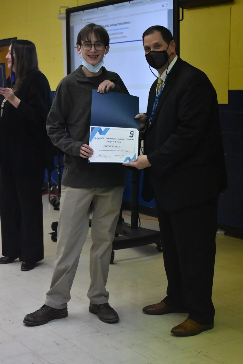 Senatobia Middle School boasted 14 students making a perfect score: Carmen Garcia-Escamilla, Carrington Luther, Aiden Brunetti, Jakob Caldwell, Ella Covington, Anna Faulkner, Omarion Geter, Ahdia Kimble, Mika Meredith, Jacob Waller, Ayden Ward, Nathaniel Willhite, Christopher Wooten and Dylan Zheng.