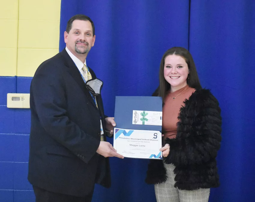 The Board recognized Maggie Lentz from SHS as the Student of the Month. Lentz also opened the board meeting in prayer at the beginning of the night.