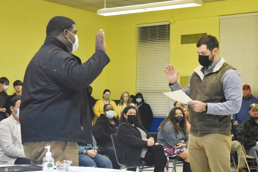 First on the agenda was the induction of new Board Member Kegan Armstrong. Armstrong was inducted by Senatobia Alderman at Large Adam Moore.