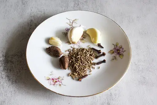 Fill a large pot with 8 to 10 cups water. Add the mutton, half of the onions, the whole cloves, cardamom pods, cinnamon stick, cumin seeds, 1 tablespoon of the garlic paste, and 1 tablespoon of the salt. Cover the pot with a tight-fitting lid. Bring to a boil over high heat, then lower the heat to maintain a gentle simmer. Cook the mutton for 1 to 2 hours, depending on the quality of the meat, until it is tender. With a slotted spoon, remove the meat. Strain the solids from the liquid, return the liquid to the pot, and place it by the stove. Discard the solids.