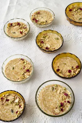 Dessert included seviyan, sweetened vermicelli noodles simmered in spiced milk.