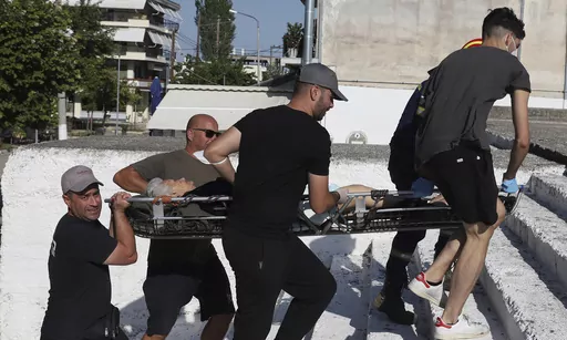 Rescuers chest-deep in water carried an elderly evacuee on a stretcher on their shoulders, while residents of villages left without electricity or drinking water dialed in to Greek television and radio stations, appealing for help and saying people were still trapped without food or water.