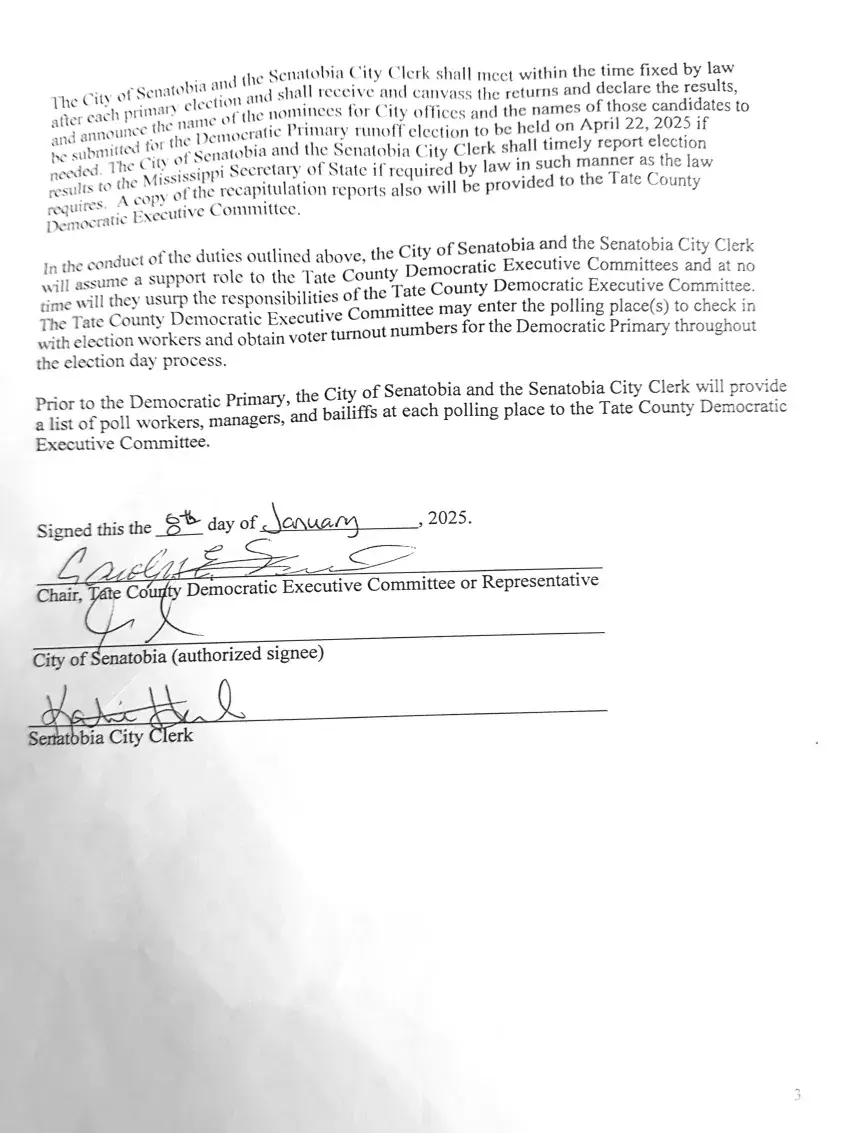 In fact, the Democratic Executive Committee entered into a contract with the City of Senatobia dated for January of 2025.