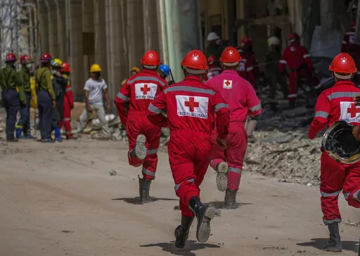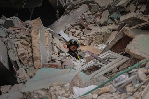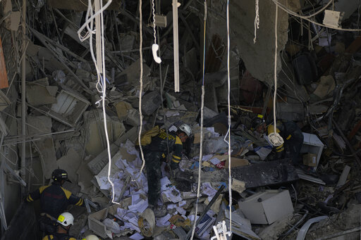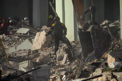 Lt. Col. Enrique Peña briefed Comandante Ramiro Valdés, who fought alongside Fidel Castro, on the search efforts at the site. Peña said the presence of people had been detected on the first floor and in the basement and four teams of search dogs and handlers were working. He did not know if the victims were alive or dead.