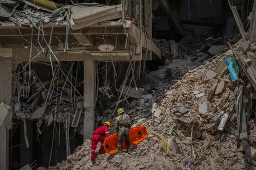 Search and rescue teams worked through the night and into Saturday, using ladders to descend through the rubble and twisted metal into the hotel’s basement as heavy machinery gingerly moved away piles of the building’s façade to allow access. Above, chunks of drywall dangled from wires, desks sat seemingly undisturbed inches from the void where the front of the building cleaved away.