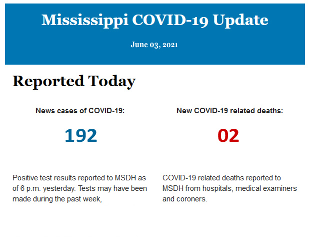 Listed below is the daily COVID-19 update for the state of Mississippi.