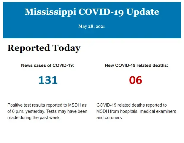 Listed below is the daily COVID-19 update for the state of Mississippi.