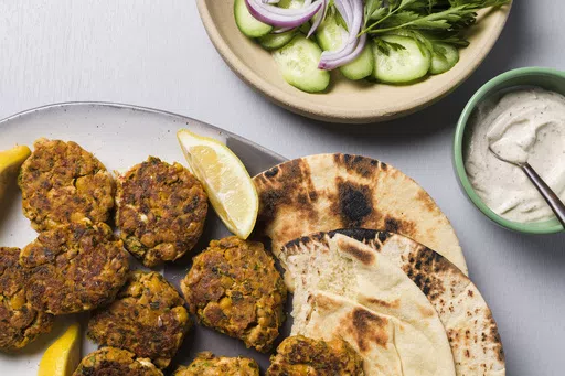 Keftedes are Greek meatballs, sometimes made with a mixture of chickpeas and sardines. For our vegetarian version, we substitute the sardines with feta cheese, which gives the keftedes a deeply savory note while keeping them meat-free. Based on the chickpea and sardine keftedes from “Smashing Plates” by London chef Maria Elia, this version is just as flavorful. In this recipe from “Tuesday Nights Mediterranean,” which features weeknight-friendly meals from the region, we flatten portions of the chickpea mixture into patties directly in the skillet, instead of shaping them into balls. This creates more surface area for browning and speeds the cooking. To begin, we whisk an egg with paprika, cinnamon, cumin, salt and pepper, then add the chickpeas, mashing them with a potato masher until they are broken down but not completely smooth. Feta and herbs are mixed in, and the mixture is shaped into balls and transferred to the refrigerator to chill for 15 minutes, which helps them hold together in the skillet. Once smashed into a nonstick skillet, let the delicate keftedes cook undisturbed until they form a golden brown crust, and flip them only once. These chickpea patties are great with a simple salad, or tuck them into pita with vegetables such as onions, tomatoes, cucumber and radishes. Serve with yogurt-tahini sauce and lemon wedges.