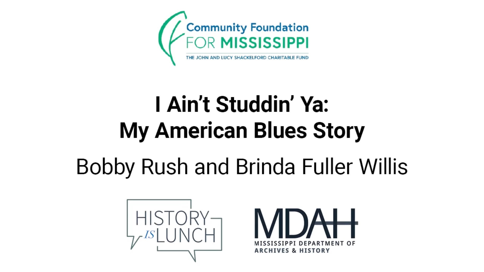 On August 4, 2021, Bobby Rush and Brinda Fuller Willis presented “My American Blues Story” as part of the History Is Lunch series.