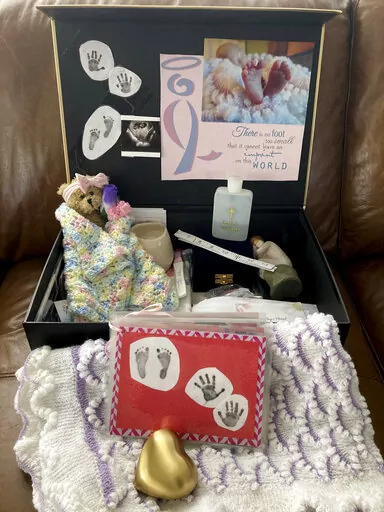 At the Denver hospital, Little Walker and her husband, Ian, got to hold their daughter, whom they'd named Riana, after she died. They maintain her memory in a box with items including her ashes in heart-shaped container, prints of her tiny hands and feet and a baby blanket.