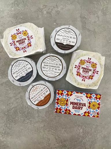 Banner Butter from Atlanta comes salted and unsalted, both delicious, but also Smoked Sea Salt, Roasted Garlic, Basil and Parsley and, for Valentine's Day, note the Dark Chocolate (on a homemade scone, perhaps?). Minerva Dairy, a family-owned creamery for more than 120 years, offers flavors like Lemon Poppy Seed and Everything Bagel. Tell me these butters don’t sound like a whole lot of fun.