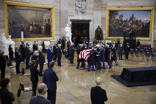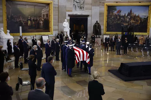 The service was largely closed to the public under COVID-19 protocols, though former colleagues, staff and others streamed in to visit, most wearing masks. He was only the 15th senator have to had the honor; his casket rested on the catafalque used for Abraham Lincoln.