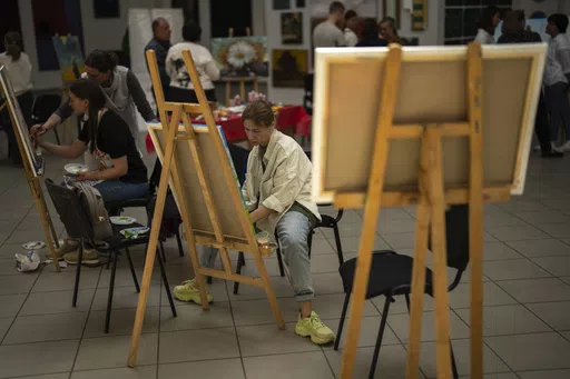KYIV, Ukraine (AP) — Paintbrush in hand, Anastasiya Sereda is working on a painting of a chubby-faced panda in the uniform of a Ukrainian soldier.