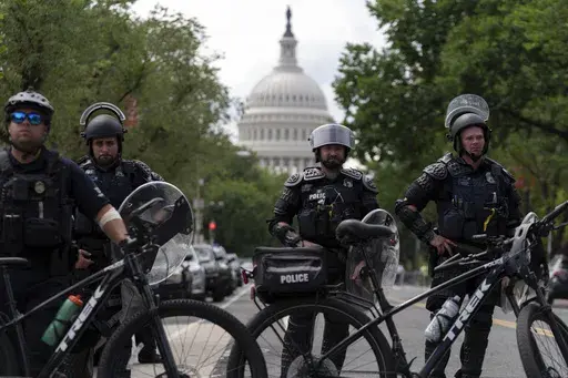 Harris on Thursday said she was outraged that some protesters tagged areas near the U.S. Capitol with pro-Hamas graffiti, expressed support for the militants and burned a U.S. flag at Union Station.
