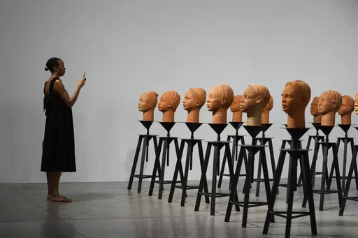 “These heads personify the absent girls, still missing, so that we don’t forget them, and raise the question of the rights of girls to a safe education on a global scale,” the artist told The Associated Press.