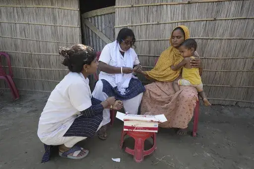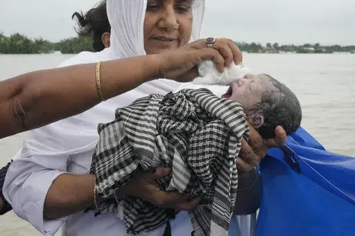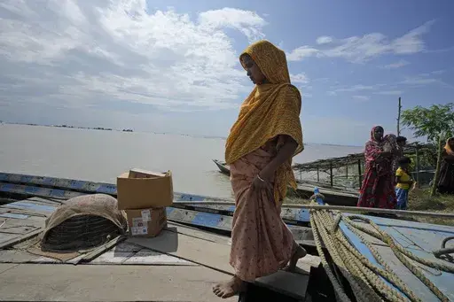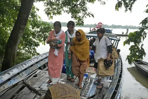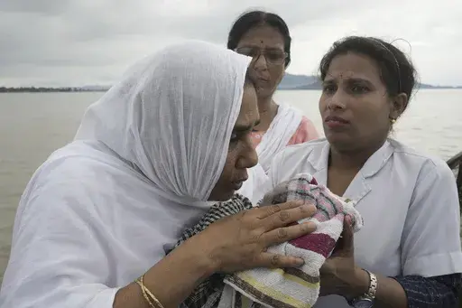 MORIGAON, India (AP) — A blue tarp covered a mother and her newborn daughter from the incessant rain on their boat journey. Jahanara Khatoon, 25, had just given birth on the boat on their way to a healthcare center, surrounded by the raging floodwaters of the Brahmaputra River.