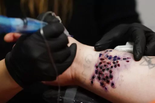 Nearby, Meagen Begley removed hand tattoos of 27-year-old Latin Count leader Gilberto Rios, wielding a pen-like tool to scrape off outer skin, then injecting a saline solution. That pushes ink into a scab, which flakes away over several weeks.