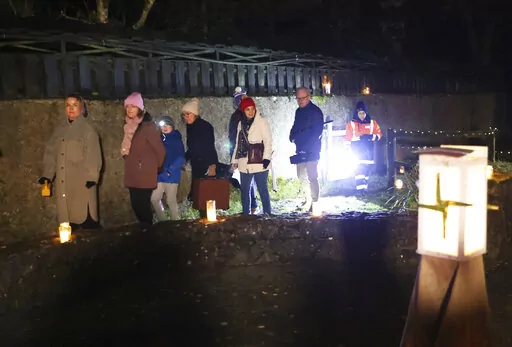 On Tuesday evening, to the backdrop of traditional Irish music played on a concertina and tin whistle, about 150 people gathered around a fire pit and a display of candles in a darkened parking lot in Kildare.