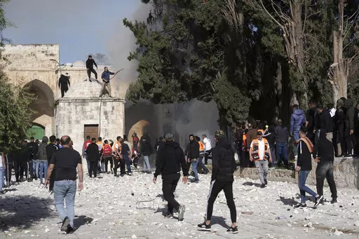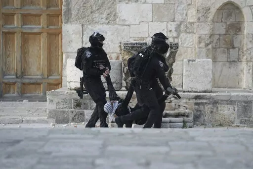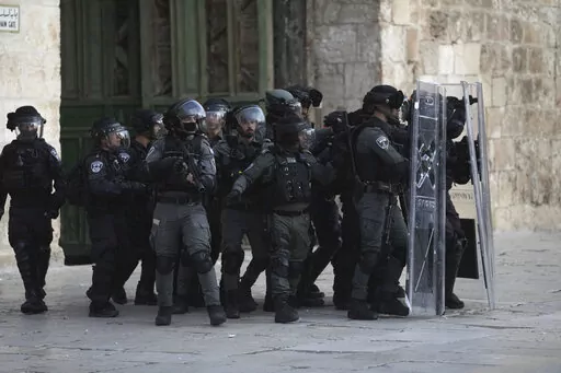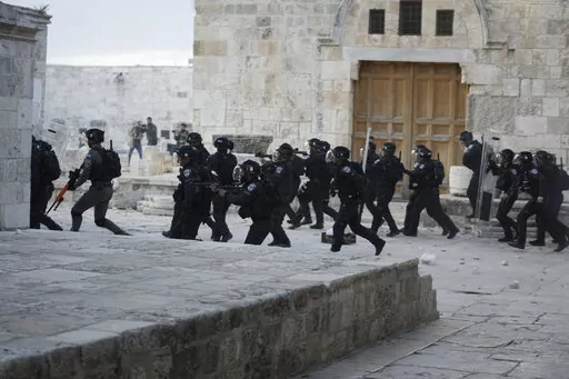 JERUSALEM (AP) — Israeli police in full riot gear stormed a sensitive Jerusalem holy site sacred to Jews and Muslims on Friday after Palestinian youths hurled stones at a gate where they were stationed.