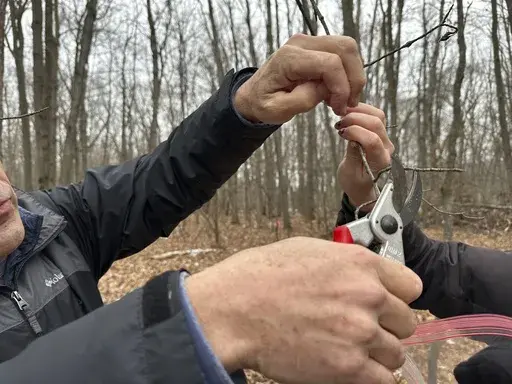 When they reached the trees, van Nocker and Christian cut off small pieces of the stems. The snippets will be tested to ensure they are fully Malus coronaria and not a hybrid. Then, these Malus coronaria cuttings — along with cuttings from previous hunts — will be grafted onto an apple rootstock. That will allow them to grow into trees which are identical to the original.
