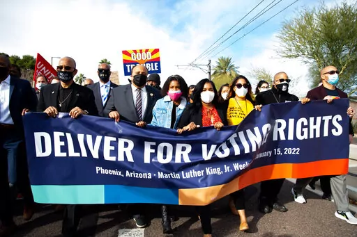 PHOENIX (AP) — Martin Luther King III came to Arizona with harsh words for Democratic Sen. Kyrsten Sinema, whose refusal to change the Senate's Jim Crow-era filibuster rules makes voting rights legislation unlikely to pass.