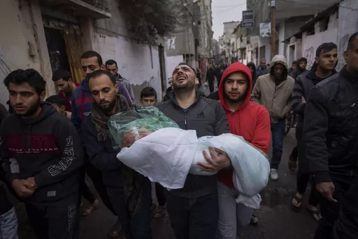 The Palestinian death toll in Gaza has risen to 24,285 people, Health Ministry said Tuesday. In Israel, around 1,200 people were killed during Hamas' Oct. 7 attack that sparked the war and saw some 250 people taken hostage by militants.