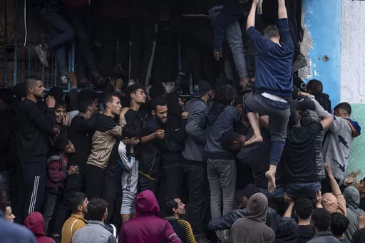 The United Nations’ World Food Program announced a pause in food and aid deliveries to northern Gaza on Tuesday after its drivers faced gunfire and violence from desperate residents swarming the trucks.