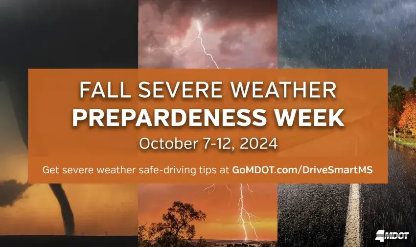 The Mississippi Department of Transportation (MDOT) is joining other state agencies in recognizing Oct. 7-12, 2024, as Fall Severe Weather Preparedness Week.