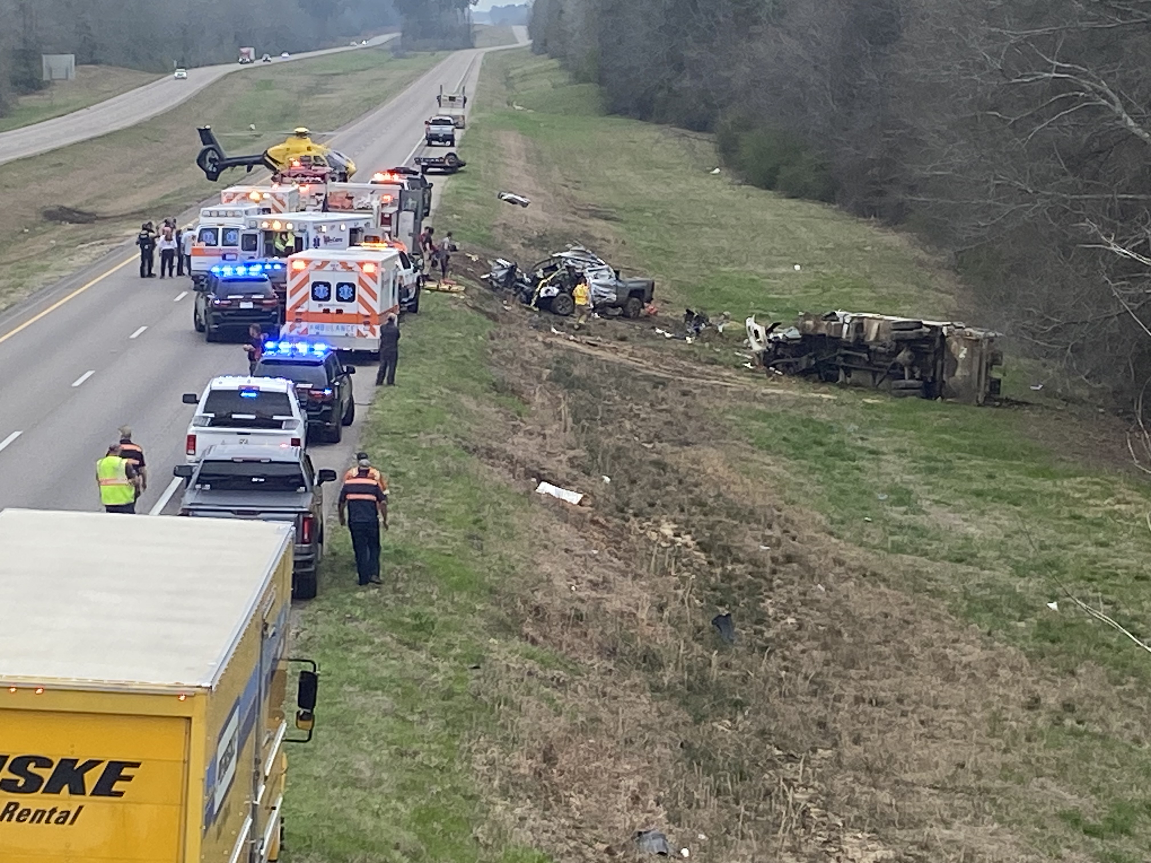 Two choppers from PHI Air Medical and one from UMMC's AirCare landed on the interstate and transported the victims to the hospital. Patrick said he could not release the names of the victims or their conditions as of Monday afternoon.