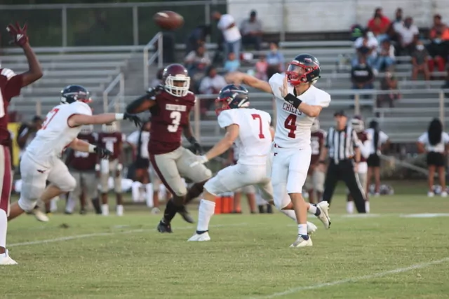 Once again, the Chieftains are unable to put together a scoring drive and are forced to punt the bsll on fourth down. Magnolia’s Dylan Birkhead fields the punt and returns it to the 32-yard line. The Chiefs then add their third TD of the night to make it 21-0 after Parker Bright’s PAT splits the uprights.