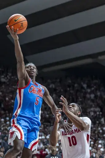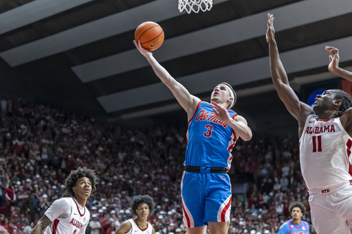 TUSCALOOSA, Ala. (AP) — Malik Dia’s 23 points, 19 rebounds and two blocks led No. 21 Mississippi to a 74-64 win over No. 4 Alabama on Tuesday.