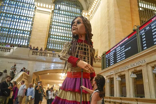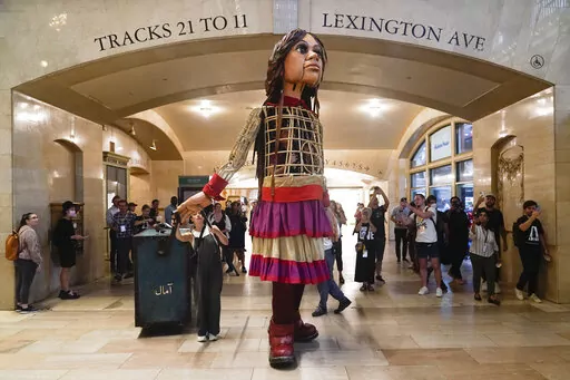 Little Amal, a 12-foot puppet of a 10-year-old Syrian refugee, is on a 17-day blitz through every corner of the Big Apple as part of a theater project hoping to raise awareness about immigration.