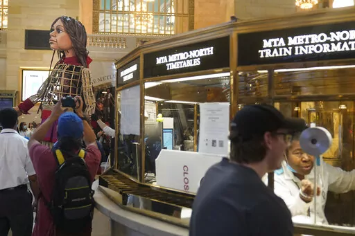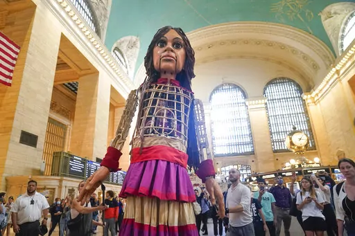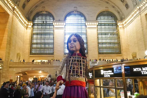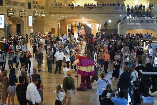 The puppet comes to the city after completing a 5,000-mile trek across Europe, from the Syrian-Turkish border to Manchester in northwest England. She has traveled through 12 countries — including greeting refuges from Ukraine at a Polish train station and stopping at refugee camps in Greece — and met with Pope Francis.