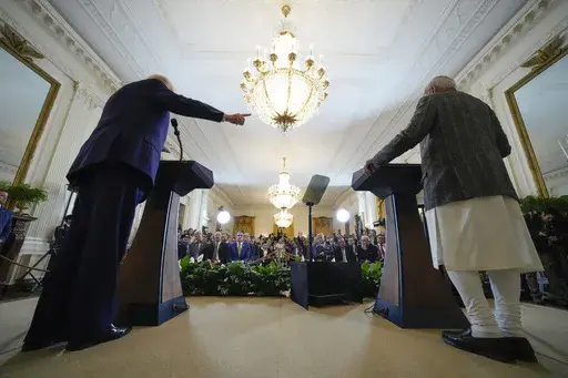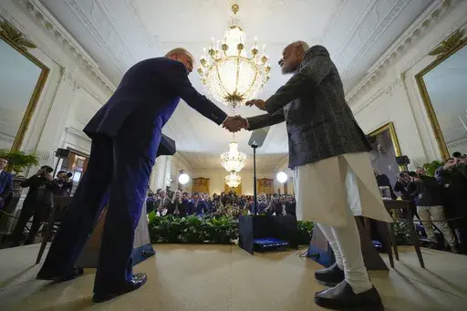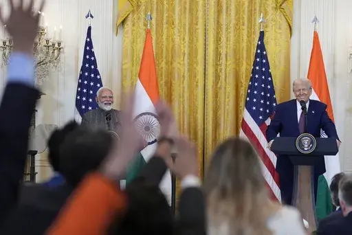 As he has while recently hosting other foreign leaders, Trump talked about ensuring that the U.S. erases its trade deficit with India. He suggested that could be done by increasing U.S. energy exports to India but also promised to restore “fairness and reciprocity” to the economic relationship and said he and Modi had begun working on a major trade deal that could be completed later this year.